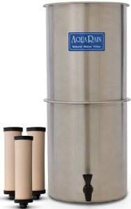 Even though this is a gravity-fed water filter that does not require plumbing, there are differences between the Travel Berkey Water Filter and the Aqua Rain water filter. First, the travel size allows consumers to carry this filtration system with them no matter where they want to go. Second, do not let its compact size fool you. This system filters chlorine, herbicides, organic solvents, pesticides, radon 22, and trihalomethanes.